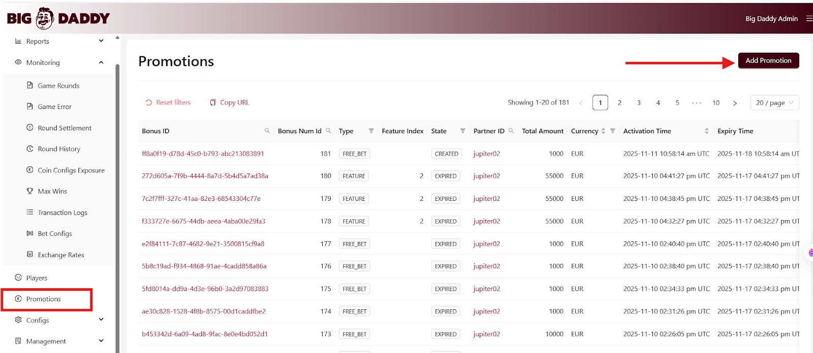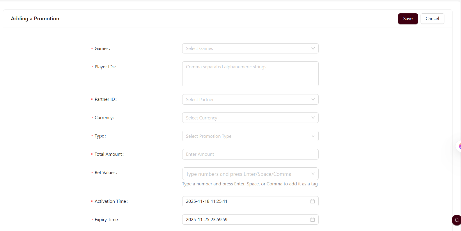 Refer to the BO screen “Add Promotion”